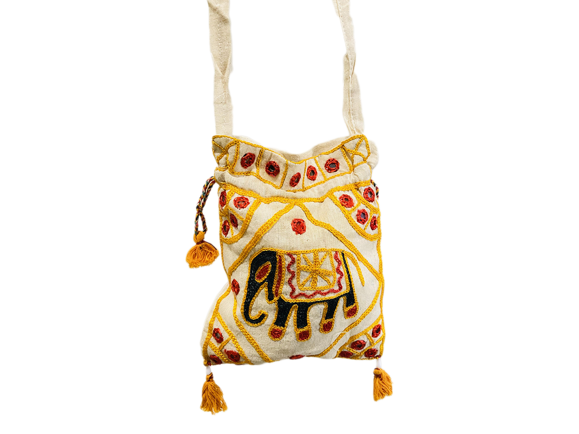 Made with best cotton fabric this ladies bag is off-white in colour and has kutch zari embroidery pattern. Bag closes with a high quality zipper. It has two small pockets and a zipper pocket inside for valuable things. A perfect shoulder bag/hobo bag/tote bag/hand bag to give you the elegant look. This bag is handmade there may be a little imperfections. You will receive assorted colours and patterns.