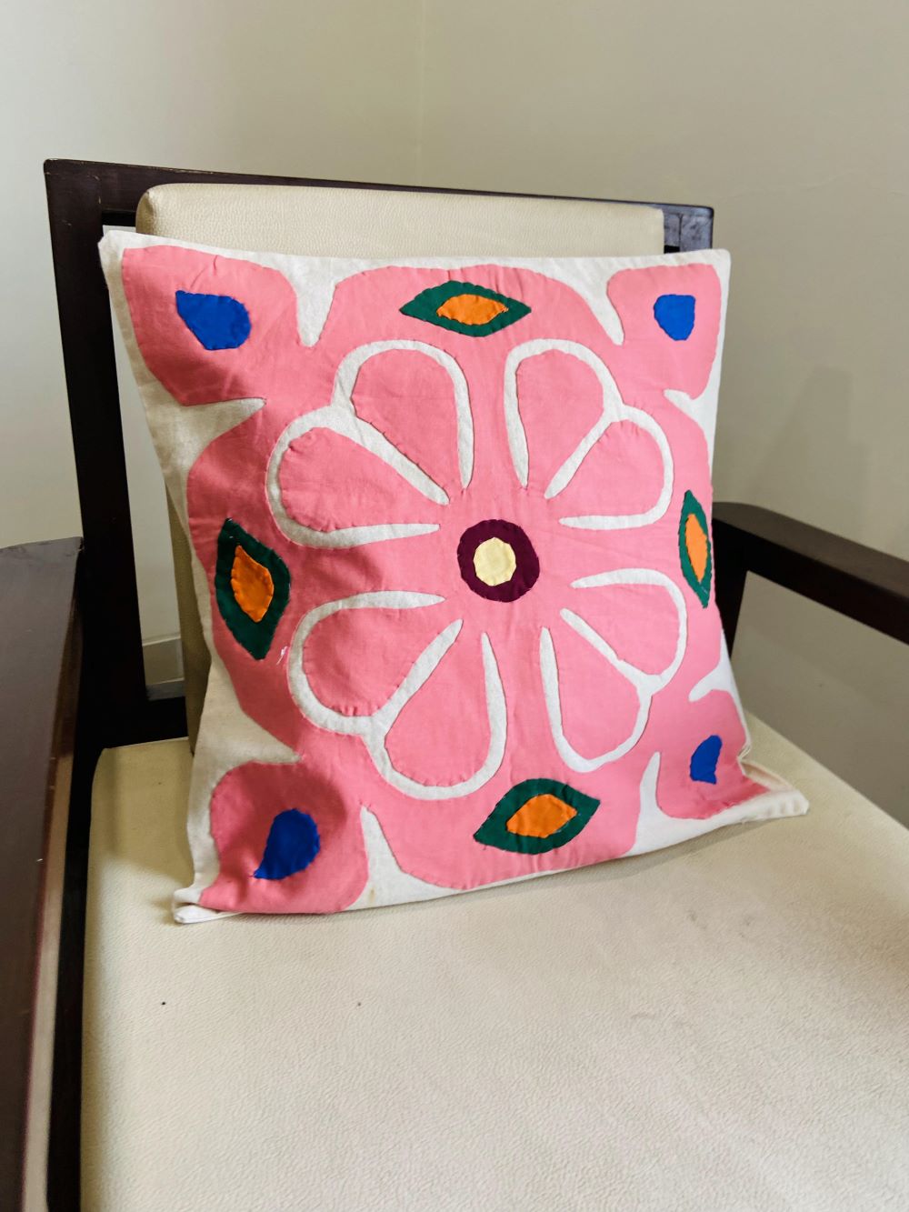 This cushion cover is made with best cotton fabric and has beautiful patch work and colour print.